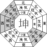 5.例えば、玄関が北東を向いている場合は、坐は南西ですから、宅向は坤(こん)となり、坤宅(こんたく)と